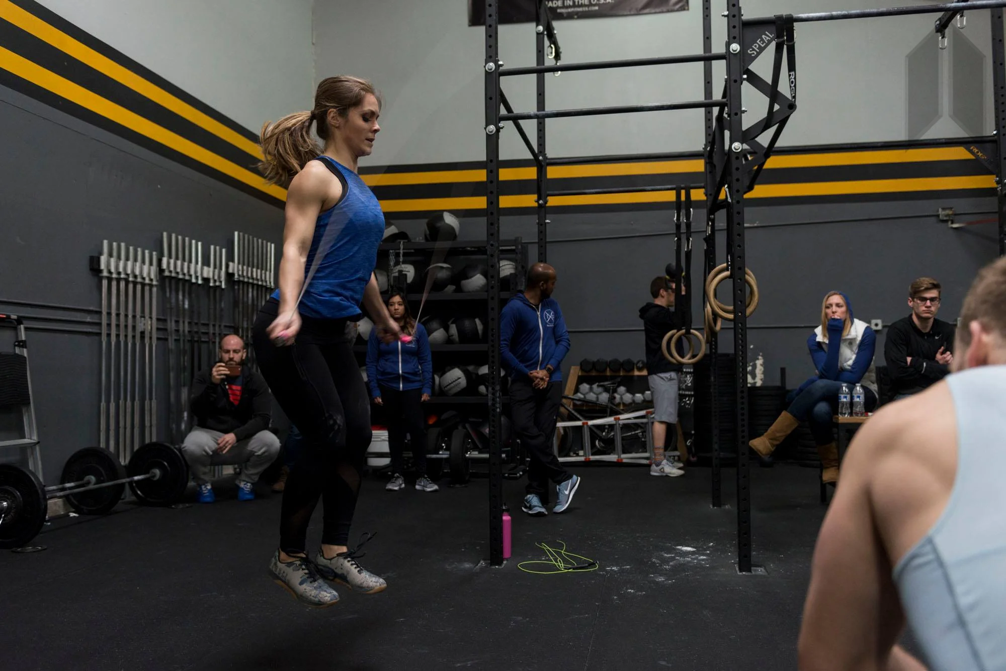 We went round after round of overhead kettle bell lunges (my teammate) and 30 unbroken double unders (me). In the middle of the workout, I suddenly tripped. Tried again, Tripped. I shouted to my teammate to step in and as he did my husband called from the sidelines, reminding me to not to let my hands drift behind me as I jumped. That was all I needed to regain my composure--going the second half of the workout without another miss. In the corner behind me, a whole team of people cheered.