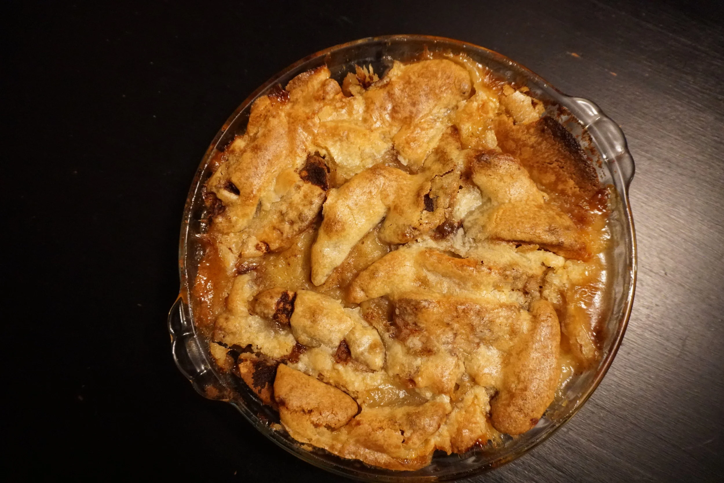 My mom refers to this as "Swedish Apple Pie." I'm not sure if that is the actual name for the pie and neither I nor she have any idea where it came from. I suspect it was some old Pennsylvania farming cookbook, but I'll never really know. I've never been a fan of pie crust so luckily for me, this pie doesn't require one. The batter crisps up just enough to form a flaky envelope filled with sugary, buttery, baked apples suspended in heaven. You're welcome.